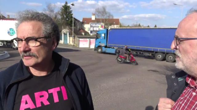 À gauche, Alain Garnier président d'ARTI, l'association des riverains du trinagle infernal d'Auxerre, un quartier au carrefour de le route de Toucy, pollué et abîmé par le trafic croissant des poids lourds (DR)